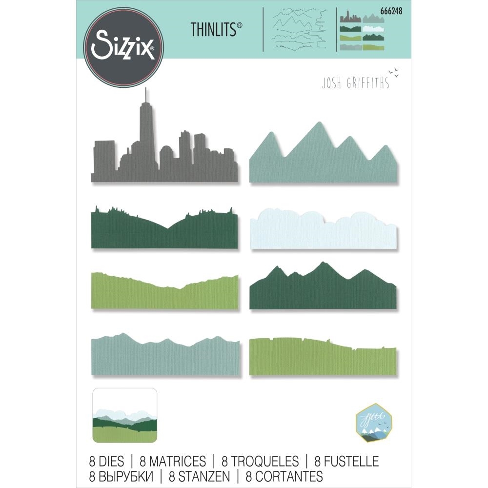 Set από 8 λεπτά, ατσάλινα dies συμβατά με όλα τα δημοφιλή μηχανήματα κοπής, ιδανικά για να δημιουργήσετε μοναδικά τοπία, από τον Josh Griffiths. Κατάλληλα για χρήση με χαρτί, cardstock, foil και vellum.