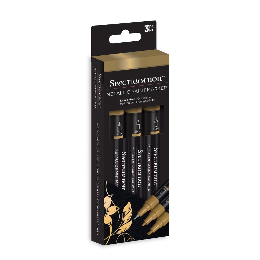 Μεταλλικοί μαρκαδόροι από την Spectrum Noir με πρωτοποριακό μελάνι με βάση το λάδι. Δίνουν πλούσια, αδιαφανή μεταλλικά χρώματα με έντονη λάμψη και είναι ιδανικοί για έργα home decor ή mixed media. Κάθε σετ περιλαμβάνει 3 μαρκαδόρους του ίδιου χρώματος με διαφορετικές μύτες, για γραφή, λεπτομέρειες ή ζωγραφική. Αποδίδουν καλύτερα σε σκουρόχρωμες επιφάνειες όπου οι ιδιότητες τους τους κάνουν πραγματικά να ξεχωρίσουν!