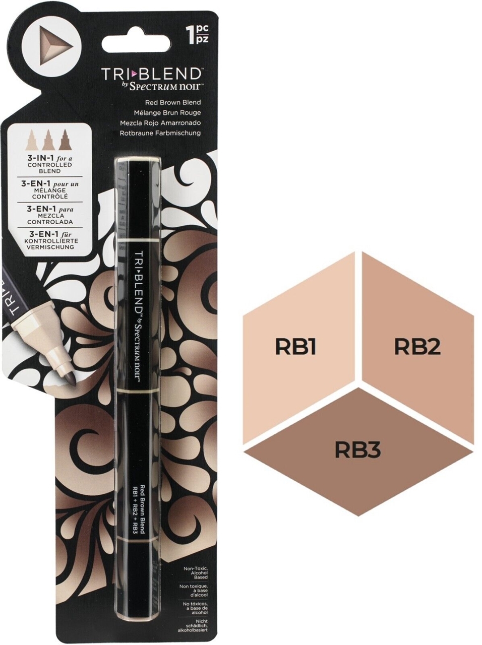 Ο Spectrum Noir TriBlend Red Brown Blend συνδυάζει τρεις αποχρώσεις κοκκινο-καφέ μέσα σε έναν μαρκαδόρο για πλούσια, ζεστή σκίαση. Ξεκινάς με τον RB1 για βασική κάλυψη, προσθέτεις ένταση με τον RB2 και δίνεις βάθος με τον RB3. Στο τέλος, περνάς ξανά ελαφρά τον ανοιχτό τόνο για να μαλακώσεις τις μεταβάσεις και να κρατήσεις τη ζωντάνια του χρώματος.