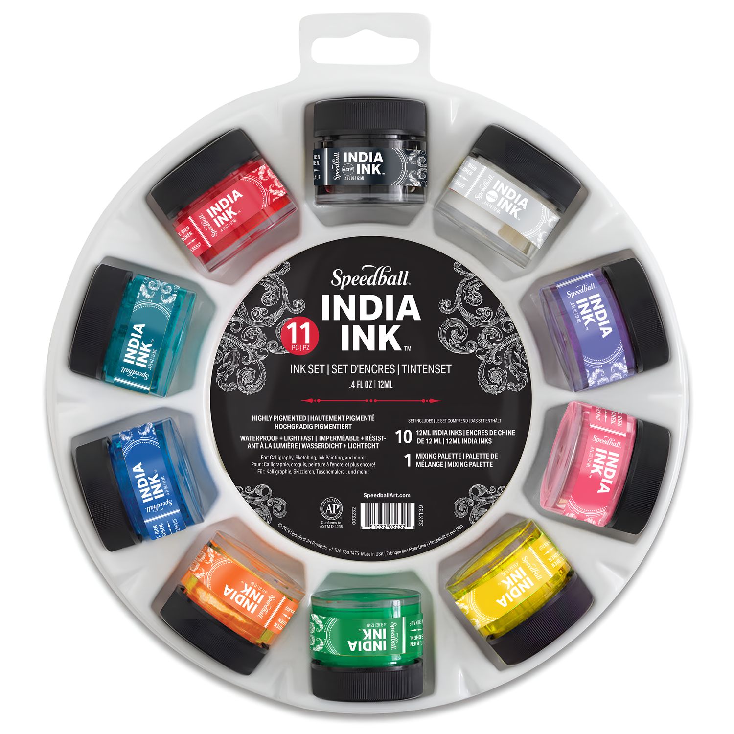 This vibrant 10-color India Ink Set features Speedballs unique vegan formulation, offering unmatched color, permanence, and fluidity. Perfect for calligraphy, illustration, and mixed media work.