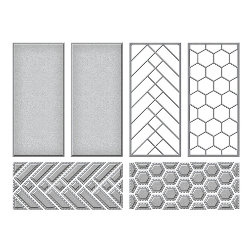 👉 Η συσκευασία περιέχει 4 μεταλλικές μήτρες κοπής σε σχήμα εξάγωνου, διαμαντιού και λοξού ορθογώνιου.