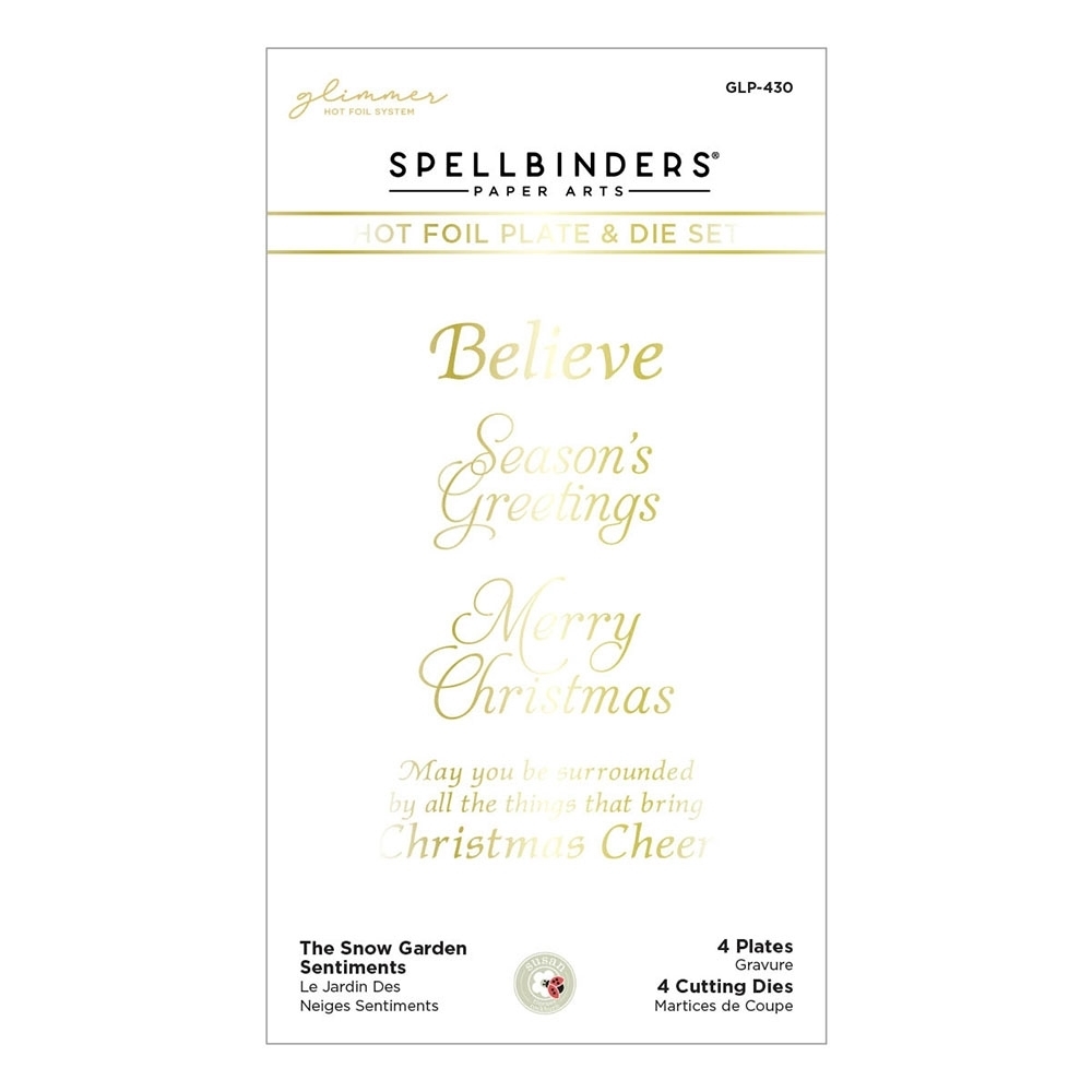 👉 Η συσκευασία περιέχει 4 glimmer hot foil plates (μήτρες χρυσοτυπίας) με τα χριστουγεννιάτικα sentiments "Season's Greetings', "May you be surrounded by all the things that bring Christmas Cheer", "Merry Christmas" και "Believe" και 4 μήτρες κοπής με τα περιγράμματα / σκιές. Οι μήτρες είναι συμβατές με όλες τις δημοφιλείς μηχανές της αγοράς.