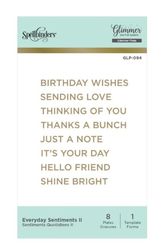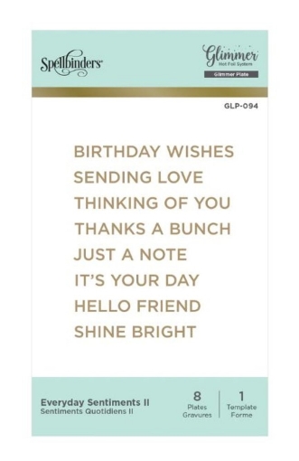 👉 Η συσκευασία περιέχει 8 hot foil plates (μήτρες χρυσοτυπίας) με τα sentiments It's Your Day, Sending Love, Hello Friend, Birthday Wishes, Thinking of You, Shine Bright, Thanks a Bunch and Just a Note και 1 μήτρα κοπής για το πλαίσιο.