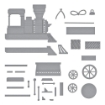 Η συσκευασία περιλαμβάνει 10 μεταλλικές μήτρες κοπής που σχηματίζουν ένα τρένο με ατμομηχανή, ένα βαγόνι, διακοσμητικά και δώρα.