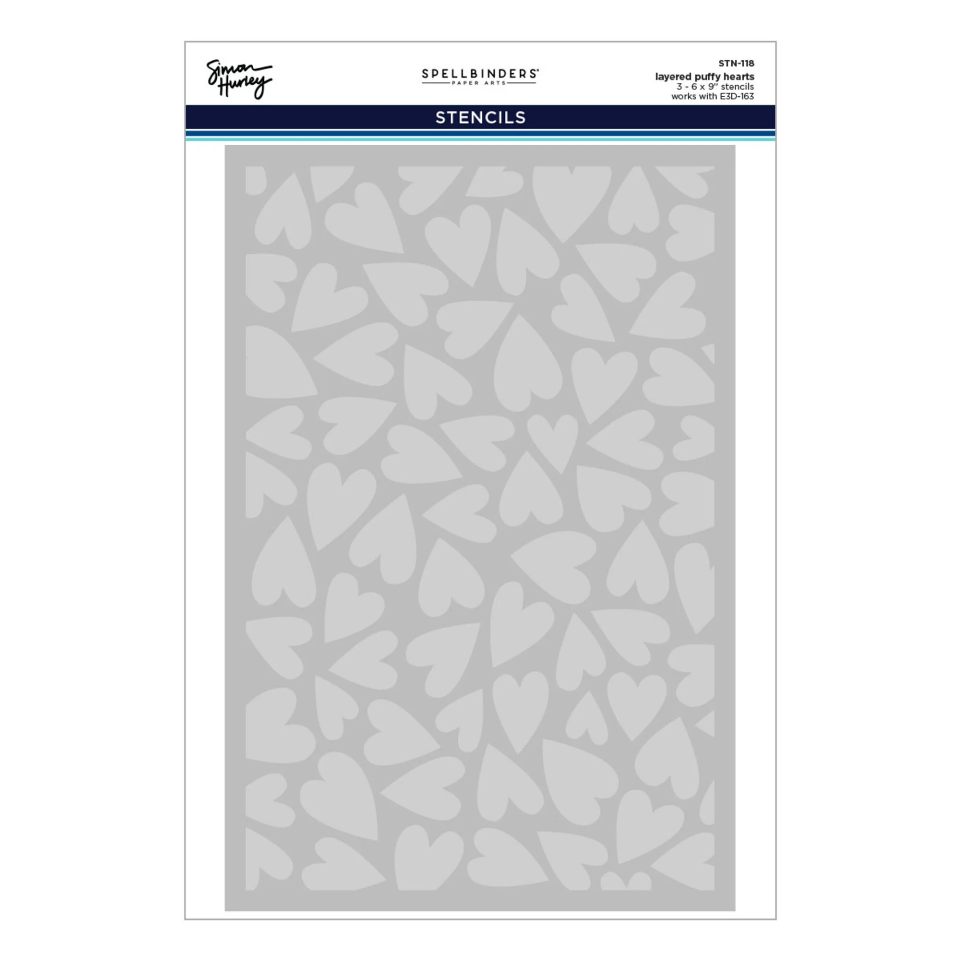 Το Spellbinders Simon Hurley Layered Puffy Hearts Stencil ανήκει στη συλλογή Sending Hugs και είναι φτιαγμένο για να σου δίνει εύκολα εντυπωσιακά φόντα με καρδιές, χρώμα και αίσθηση βάθους. Το σετ περιλαμβάνει 3 φύλλα στένσιλ από ανθεκτικό mylar, τα οποία δουλεύουν σε σειρά ώστε να δημιουργήσεις ένα πολυεπίπεδο σχέδιο με καρδιές που δείχνει πλούσιο και ζωντανό.