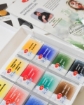 👉 Η συσκευασία περιλαμβάνει μία ειδικά σχεδιασμένη κασετίνα με 12 pans ακουαρέλας στα παρακάτω χρώματα: Ultramarine, Phthalo Blue, Emerald, Light Green, Gold, Yellow Ocher, Payne's Gray, Tan Shade, Violet, Quinacridone Pink, Cadmium Red, και English Red.