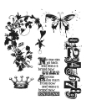• 5 σφραγίδες rubber σε cling με κορώνες, πεταλούδες, αριθμούς και στοιχεία από παραμύθια