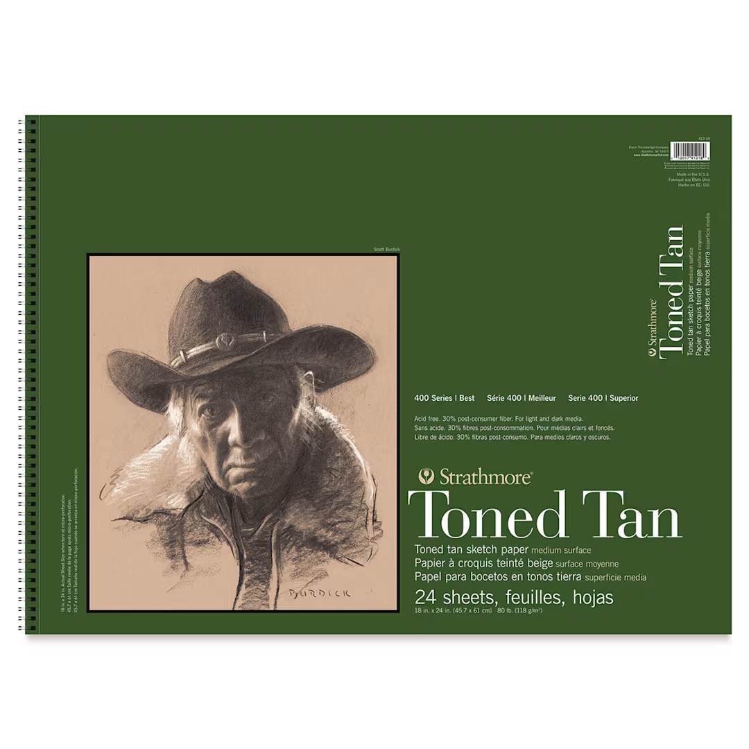 Μεγάλο μπλοκ sketch από τη Strathmore με 24 φύλλα 118gsm σε toned tan. Ιδανικό για όσους λατρεύουν να δουλεύουν σε mid-toned χαρτί, αναδεικνύοντας τόσο τις σκιές όσο και το λευκό στα highlights.