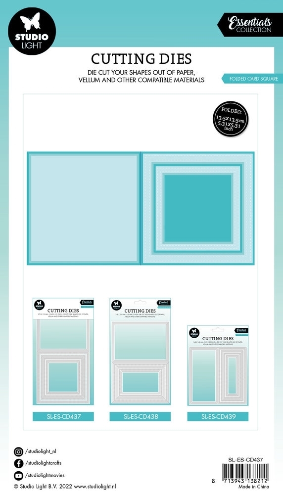 Το σετ περιλαμβάνει 9 μεταλλικές μήτρες κοπής σε διάφορα μεγέθη που θα σας βοηθήσουν να δημιουργήσετε κάρτες σε τετράγωνο σχήμα.