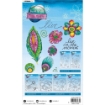10 διάφανες σφραγίδες με doodling εικόνες από φτερά, λουλούδια και τις φράσεις "live" and "live in the moment".
