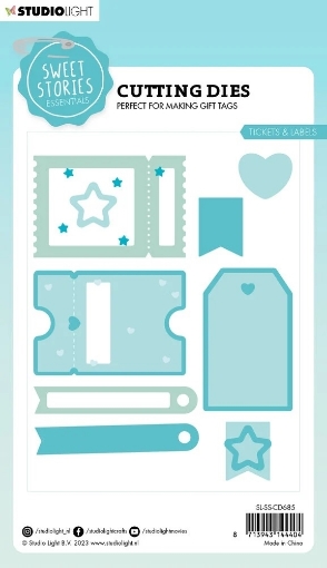 👉 Η συσκευασία περιέχει 18 μήτρες κοπής. Με εικόνες από εισιτήρια και ετικέτες.