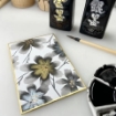 💡Όταν το μελάνι χρησιμοποιηθεί ως έχει σε ριζόχαρτο, το μαύρο χρώμα συγκεντρώνεται γύρω από τα μεταλλικά ρινίσματα δημιουργώντας ένα "περίγραμμα" γύρω από το χρυσό. Όταν χρησιμοποιηθεί αραιωμένο ή σε άλλο χαρτί, το εφέ είναι λιγότερο έντονο αλλά εξίσου όμορφο.
