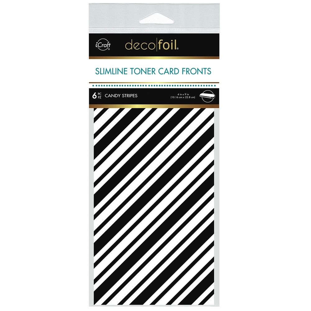 Τα Deco Foil White Slimline Toner Card Fronts – Candy Stripes της Therm-O-Web είναι η πιο γρήγορη λύση για καθαρό, επαγγελματικό foiling χωρίς μηχανή hot foil. Πρόκειται για έτοιμα toner sheets με κομψό σχέδιο διαγώνιων ριγών, ειδικά σχεδιασμένα για slimline κάρτες.