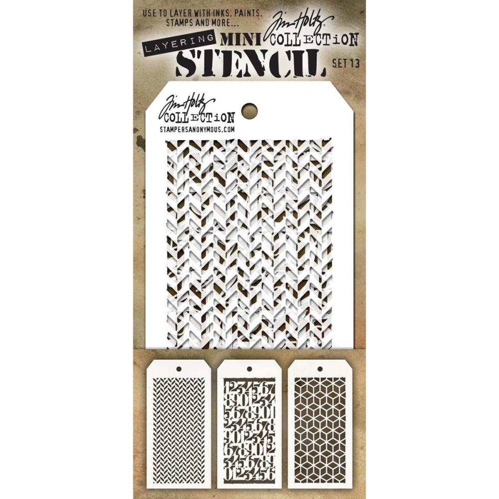 Σετ στένσιλ σχεδιασμένο από τον Tim Holtz για την Stampers Anonymous. Χωρίς αμφιβολία, η ευελιξία των στένσιλ τα καθιστά από τα αγαπημένα εργαλεία μεταξύ των crafters. Και ο Tim Holtz σίγουρα το γνωρίζει! Χρησιμοποιήστε τα με μελάνια, ακουαρέλες, stains, δώστε διάσταση στα art journals σας, τις κάρτες, τα mixed media έργα σας, χρησιμοποιήστε τα κάθε ένα μόνο του ή και μαζί για να δημιουργήσετε επίπεδα. Υπάρχουν τόσοι διαφορετικοί συνδυασμοί και ο Tim σας καλεί να επιστρατεύσετε την έμπνευσή σας και να πειραματιστείτε χωρίς τελειωμό!
