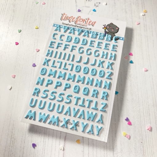 91 puffy αυτοκόλλητα, από την Time For Tea Designs, με τα κεφαλαία γράμματα της λατινικής αλφαβήτου. Σε γαλάζιο χρώμα. Ιδανικά για κάρτες, σελίδες scrapbooking, journals, planner και όλα τα paper crafting έργα σας!