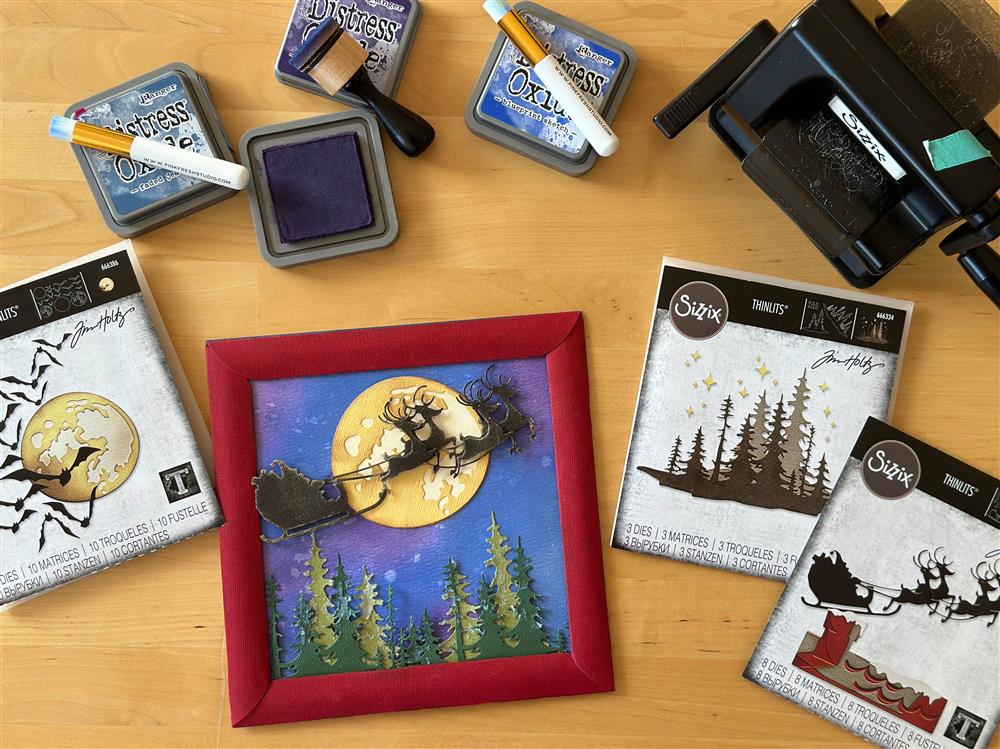 Σήμερα, θα σας δείξω πώς έφτιαξα αυτή τη Χριστουγεννιάτικη σκηνή, με μελάνια distress oxides και τα dies του Tim Holtz. Αγαπώ όλα τα διαφορετικά και απίθανα μελάνια που έχει το scrapbooking, που μας βοηθάνε να βάζουμε χρώμα παντού!