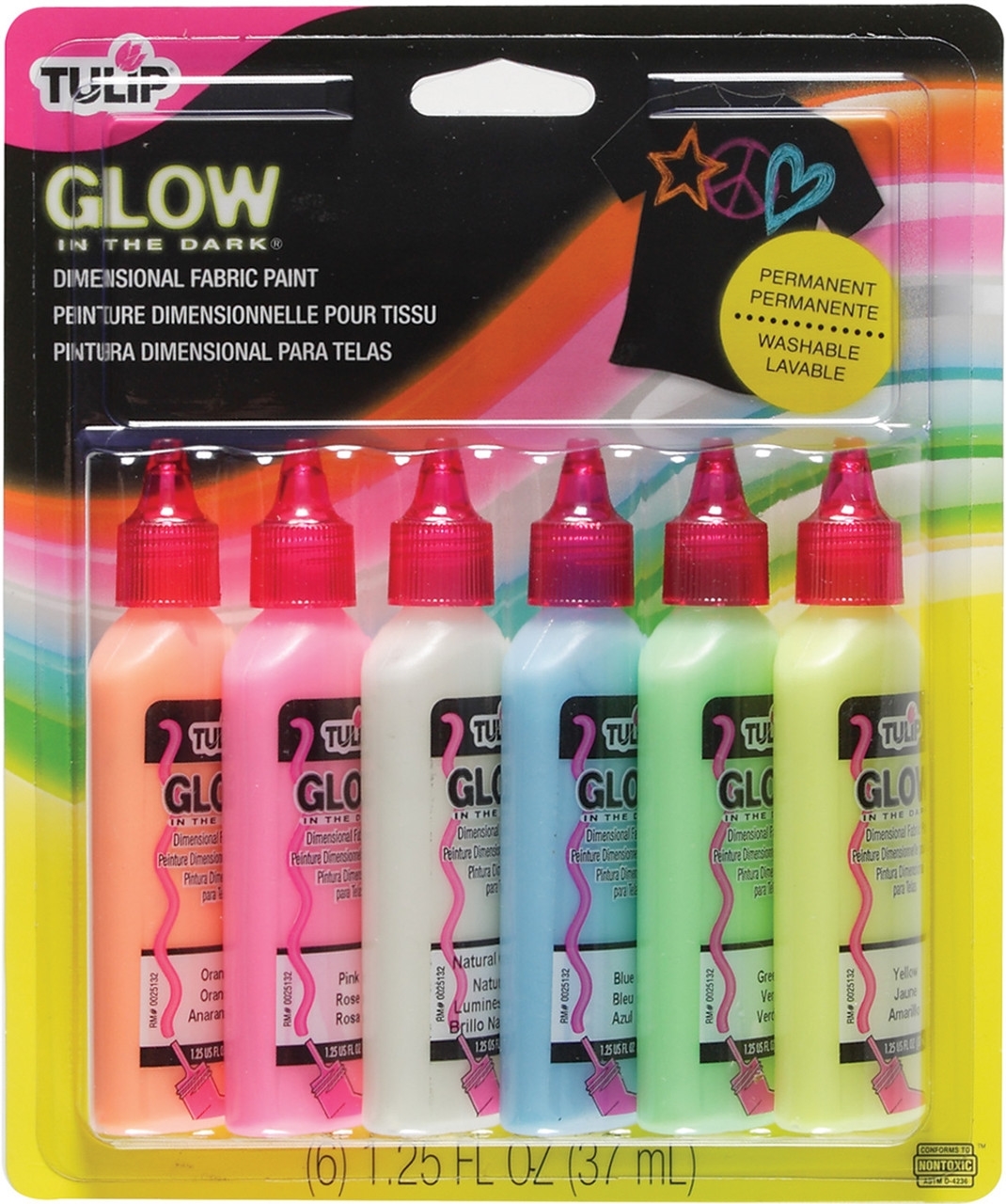 Tulip Dimensional Fabric Paint 3D Χρώματα Υφάσματος - Glow In The Dark, 6τεμ.