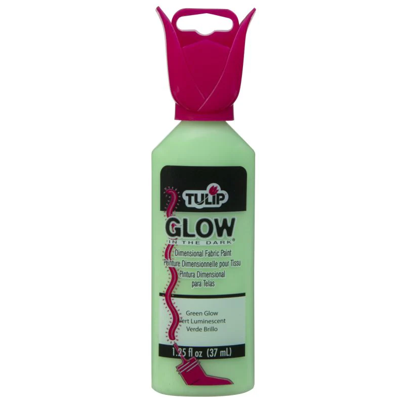 Η Tulip Glow In The Dark Dimensional Fabric Paint – Green Glow είναι το τέλειο χρώμα για να προσθέσεις 3D λεπτομέρειες που φορτίζουν στο φως και φωσφορίζουν στο σκοτάδι.