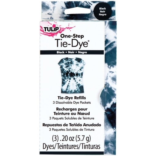 Τα Tie-Dye Kit από την Tulip είναι ένας νέος, φανταστικός τρόπος για να βάφετε υφάσματα! Μπορείτε να βάψετε μπλούζες, παπούτσια, τσάντες, εύκολα και γρήγορα, δημιουργώντας καταπληκτικά εφέ! Πλύντε το ύφασμα που θέλετε να βάψετε, δέστε το ανάλογα με το σχέδιο που θέλετε να δημιουργήσετε και προσθέστε τα χρώματα που θέλετε. Κλείνετε το ύφασμα σε πλαστική σακούλα για να παραμείνει βρεγμένο και το αφήνετε για τουλάχιστον 6 - 8 ώρες (τα φωτεινότερα χρώματα χρειάζονται περισσότερο χρόνο). Δεν χρειάζεται άλλη προετοιμασία πριν τη βαφή: τα υφάσματα μπορούν να πλυθούν στο πλυντήριο και τα χρώματα παραμένουν έντονα και φωτεινά ακόμα και μετά από πολλές πλύσεις.