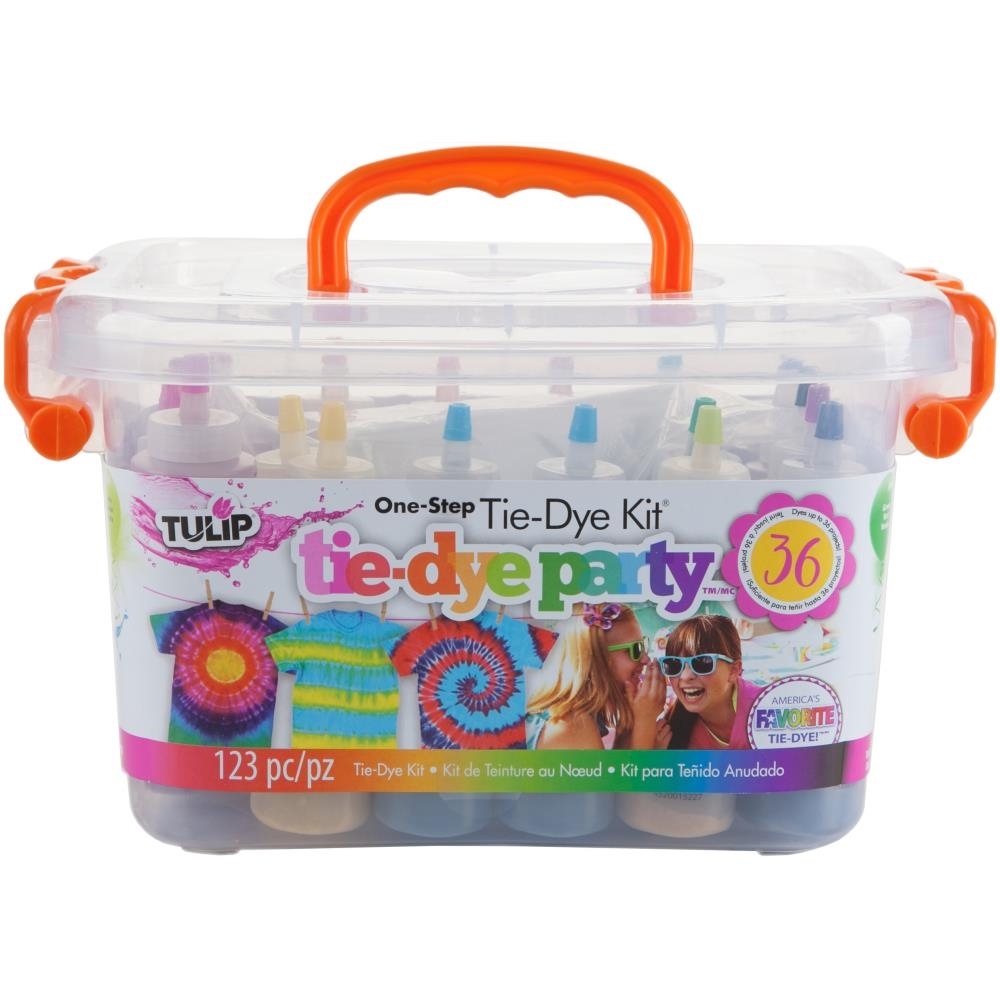Το πάρτυ κιτ περιλαμβάνει όλα τα υλικά που χρειάζεστε για 36 projects - πλαστικά γάντια, λαστιχάκια, πλάστικο κάλυμα, 18 μπουκαλάκια με συμπυκνωμένα, μη τοξικά, One-Step χρώματα σε 14 αποχρώσεις, και οδηγό με 8 διαφορετικές τεχνικές για εντυπωσιακά σχέδια. Χρησιμοποιήστε τα με 100% φυσικά υφάσματα όπως βαμβακερά, rayon και μάλινα για καλύτερα αποτελέσματα.