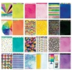Το μπλοκ περιλαμβάνει 24 φύλλα διπλής όψης με εικόνες από μολύβια, κύκλους, ουράνια τόξα, πεταλούδες, λουλούδια και άλλα σε πολύχρωμα μοτίβα.