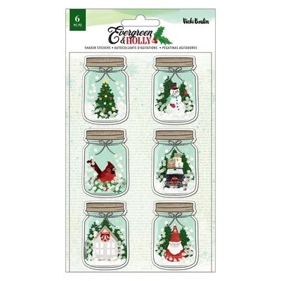 Τα αυτοκόλλητα είναι σε σχήμα μικρών βάζων και μέσα τους υπάρχει ένας χιονάνθρωπος, ένα σπίτι, ένα χριστουγεννιάτικο δέντρο, ένα πουλί πάνω σε ένα χριστουγεννιάτικο στεφάνι, ένας Άγιος Βασίλης και ένα αυτοκίνητο φορτωμένο με δώρα αντίστοιχα. Στο εσωτερικό του κάθε μικρού βάζου υπάρχει ιριδίζον λευκό glitter που ανακινείται με την κίνηση.