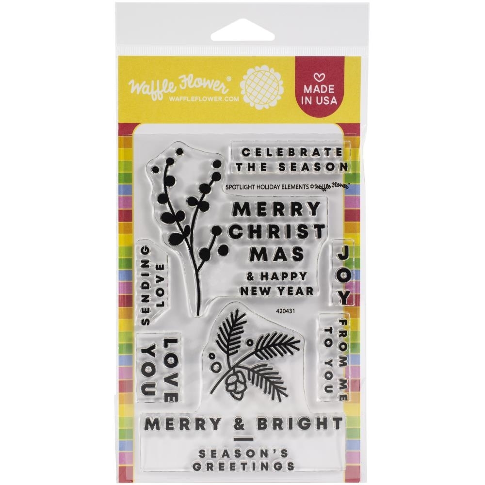 7 σφραγίδες clear της Waffle Flower Crafts με χριστουγεννιάτικες φράσεις όπως “From me to you”, “Merry & Bright”, “Merry Christmas & a Happy new year” και άλλα.