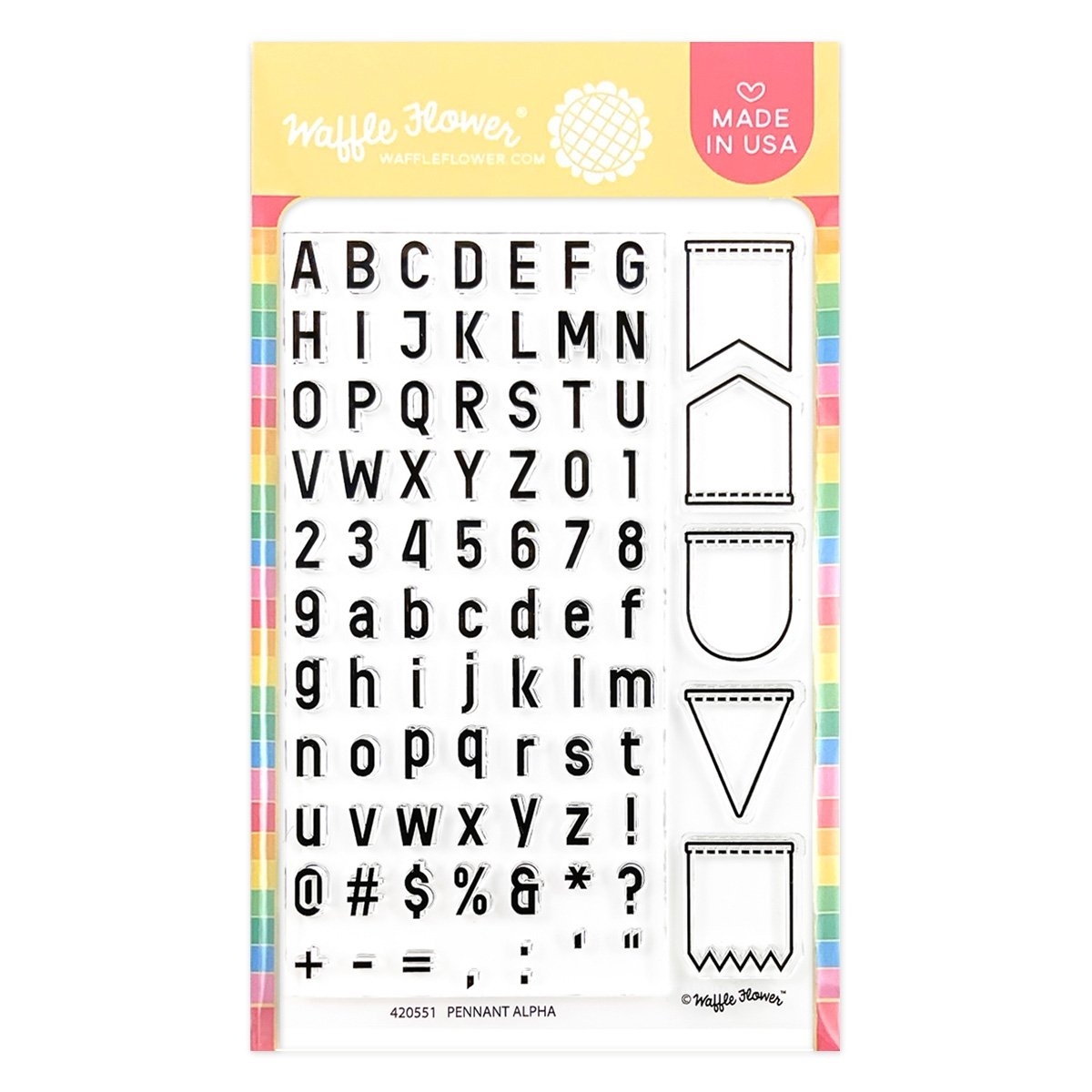 6 σφραγίδες clear της Waffle Flower Crafts με ένα πλήρες σύνολο γραμμάτων (κεφαλαίων και πεζών), αριθμών και ποικίλων σημείων στίξης και συμβόλων.
