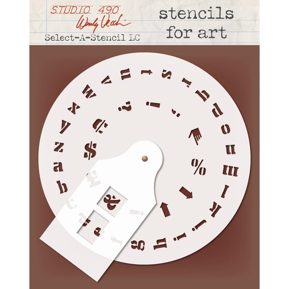 Ένα "ευέλικτο" στένσιλ από τη Wendy Vecchi με λατινικά μικρά γράμματα και σύμβολα.