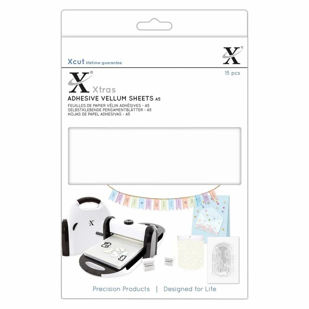 15 αυτοκόλλητα φύλλα περγαμηνής (vellum) από την Xcut. Ιδανικά για δημιουργία καρτών, tags, distressing, tearing edging, die-cutting, photo matting και άλλων.