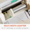 Το μηχάνημα έχει ενσωματωμένη μια κασέτα με ταινία μόνιμης κόλλας διαστάσεων 12,7 cm x 5,4m (5" x 18’) αλλά δέχεται και ανταλλακτικές κασέτες, η τοποθέτηση των οποίων είναι εξίσου εύκολη! Η ανταλλακτική κασέτα 5" μπαίνει στους πλευρικούς οδηγούς του Xyron Creative Station Lite και η ανταλλακτική κασέτα 3” προσαρμόζεται στον αντίστοιχο οδηγό ειδικό για κασέτες.