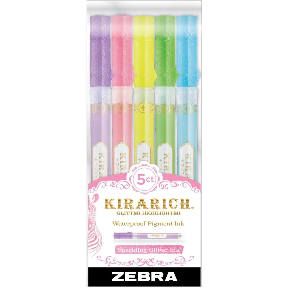 Kirarich glitter μαρκαδοράκια διαγράμμισης από την Zebra. Σκορπίστε λάμψη στα έργα ή στα planner σας! Το highlighter έχει μελάνι με βάση το νερό και είναι εμποτισμένο με αστραφτερά σωματίδια  που δίνουν στα projects σας ένα εντυπωσιακό και πολύ ... λαμπερό αποτέλεσμα!